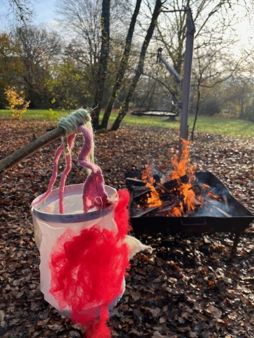 Unsere Laternen waren in diesem Jahr besonders schön: Es gab unter anderem leuchtende Sterne, Laternen mit Filz und einige, die wie kleine Flammen funkelten. Mit Musik und Gesang zogen wir ins Zuckergärtchen, wo unsere großartigen Hausmeister bereits ein wärmendes Feuer entfacht hatten. Dort teilten wir – ganz im Sinne des heiligen Martin – unsere St.-Martinsbrezeln und verbrachten den Vormittag in gemütlicher Atmosphäre.